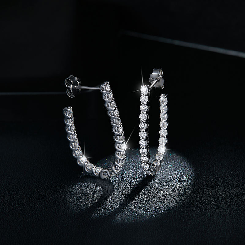 ต่างหูฮิปฮอปประดับเพชรโมอิสซาไนต์สีขาว วัสดุซิลิโคนสีเงิน
