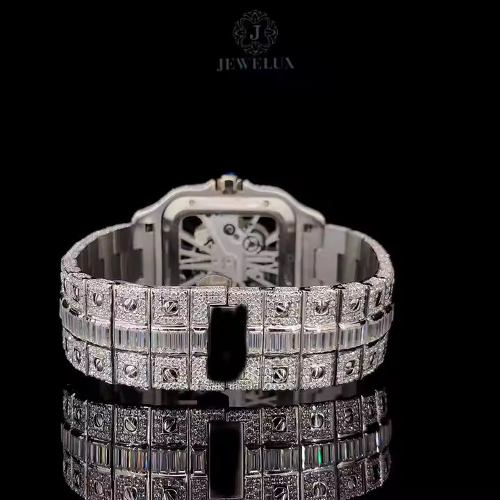 นาฬิกาโครงกระดูกฮิปฮอปสำหรับผู้ชาย VVS ความชัดเจน baguete และเพชรโมอิสซานาไนต์ตัดกลมเพชรนาฬิกาโบราณตัวเลขโรมันสำหรับทุกเพศ