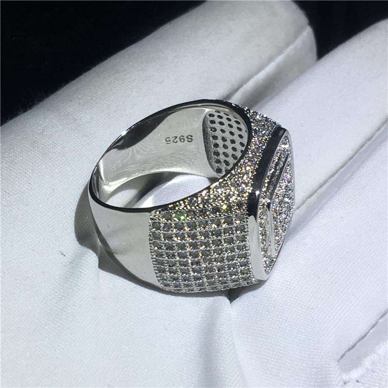 แหวนเงินสเตอร์ลิงสำหรับผู้ชายแนวฮิปฮอป925สี่เหลี่ยมสำหรับปลูกในแล็บทรงกลมตัดสดใส