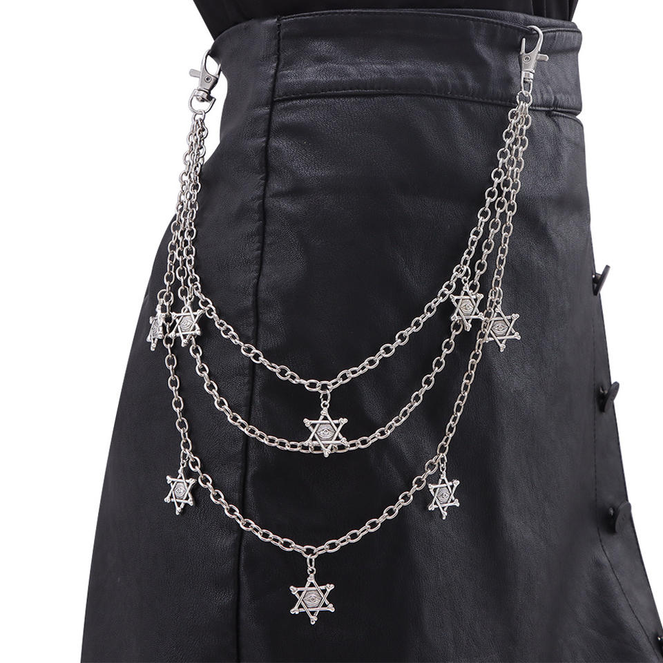 เข็มขัดตกแต่งลายดาวฮิปฮอปหลายชั้น สีเงินทิเบต สไตล์พังก์ โลหะ สำหรับสวมใส่ในชีวิตประจำวัน