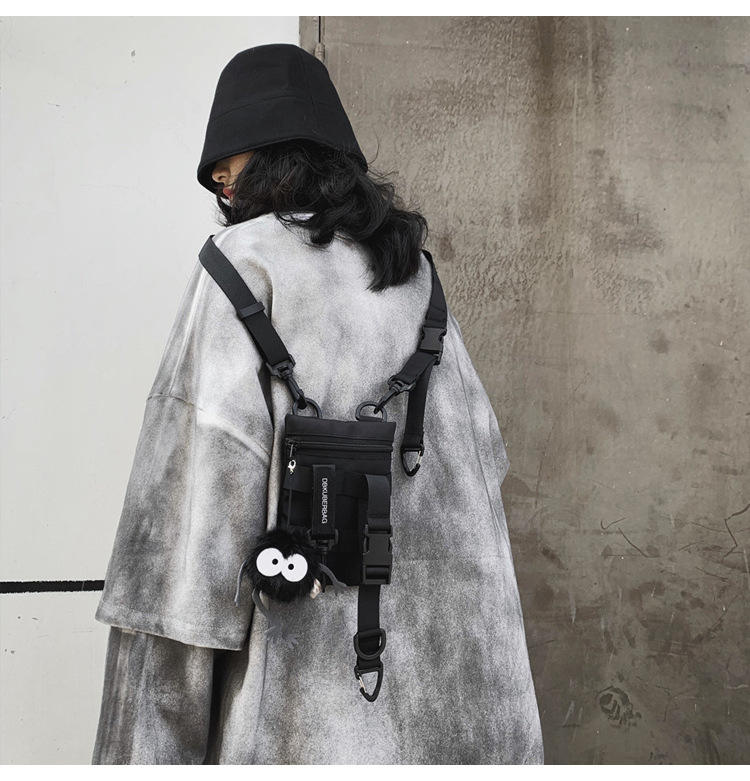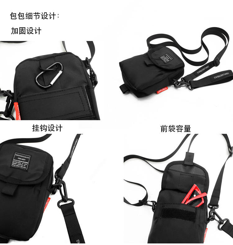กระเป๋าสะพายข้างสไตล์ฮิปฮอปสตรีทแฟชั่นสำหรับผู้ชายและผู้หญิงกระเป๋าคาดลำตัวไนลอนยุทธวิธีกระเป๋าใส่โทรศัพท์มือถือ