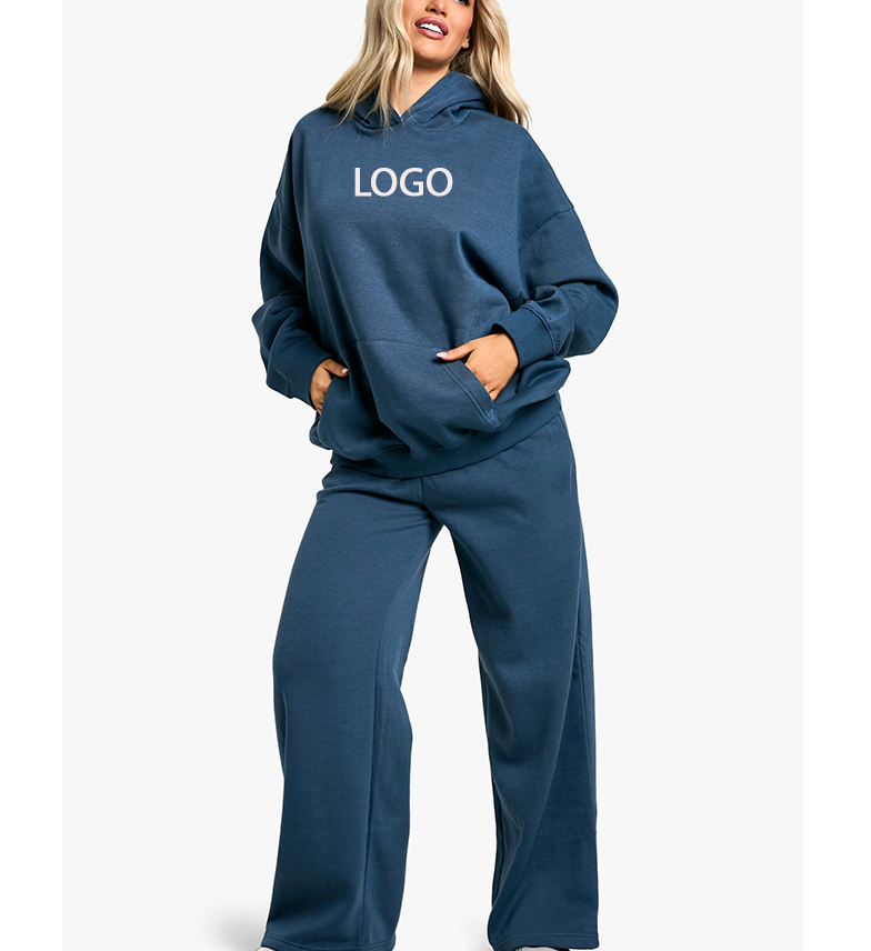 ชุดฮิปฮอปสตรีทแวร์ฤดูใบไม้ร่วงฤดูหนาว เสื้อฮู้ดดี้สีพื้นเข้าชุด กางเกงขายาวเอวสูงจีบระบายพร้อมเชือกผูก ลายพิมพ์ 3 มิติ ชุดผ้าแคนวาสคอตตอนสำหรับผู้หญิง