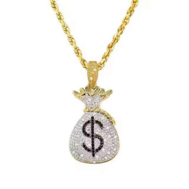 จี้ทองคำแท้ 10k สไตล์ฮิปฮอป ประดับโมอิสซาไนต์ 2.35 กะรัต ดีไซน์ถุงเงิน โดดเด่นสะดุดตา ของขวัญเครื่องประดับสำหรับเขา