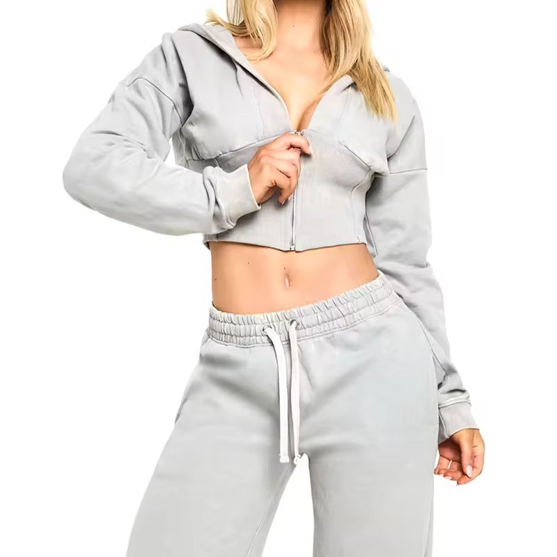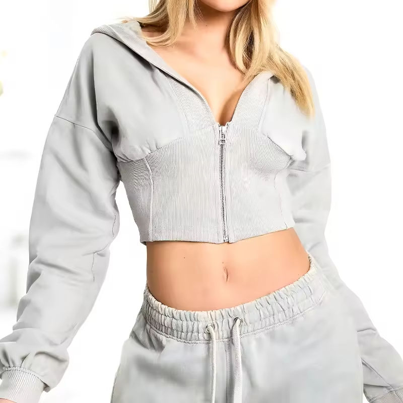 ชุดฮู้ดดี้ครอปซิปเต็มตัวสไตล์ฮิปฮอป ผ้าฟลีซคอตตอน 100% คุณภาพสูง ลุคซันเฟด ซักฟอกสำหรับผู้หญิง
