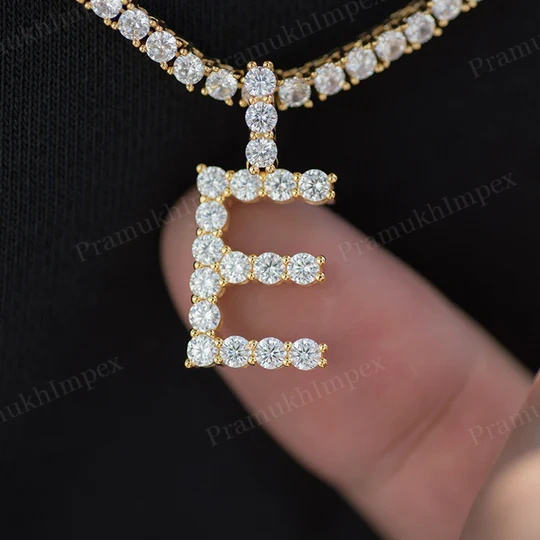 จี้ตัวอักษรสไตล์ฮิปฮอปจี้เงินเพชรโมอิสซานไนท์ตัดกลมส่งตรงจากเครื่องประดับขายส่งในราคาโรงงานอินเดีย
