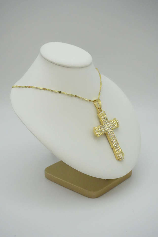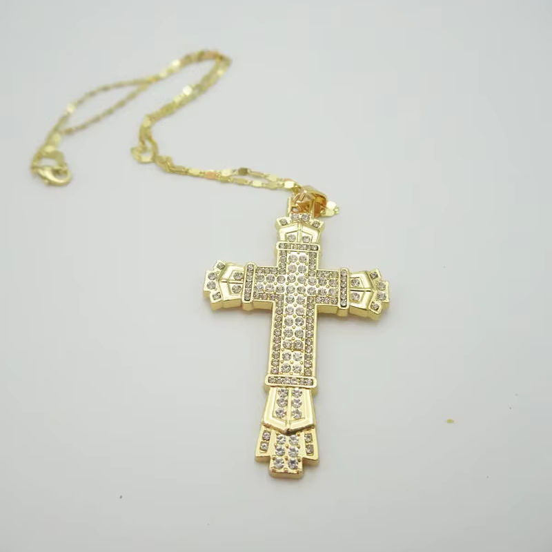 สร้อยคอจี้ไขว้สไตล์ฮิปฮอปเครื่องประดับแฟชั่นอัลลอยฝังพลอยเทียมสำหรับผู้ชายจี้รูปไม้กางเขนมีสไตล์