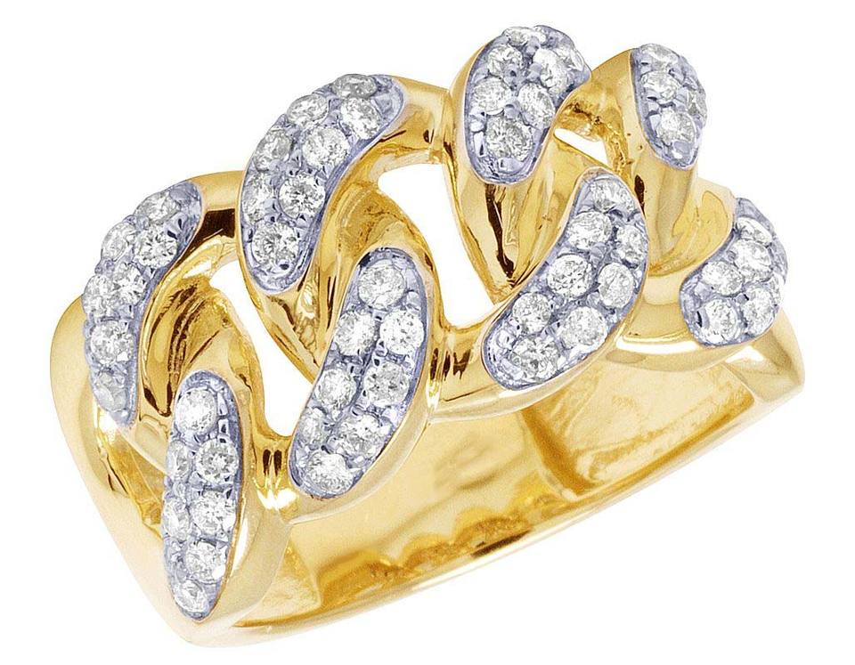 Hip Hop Style Customize In S925 silver Yellow Gold Plated Moissanite Diamond Cuban Link Ring for men's