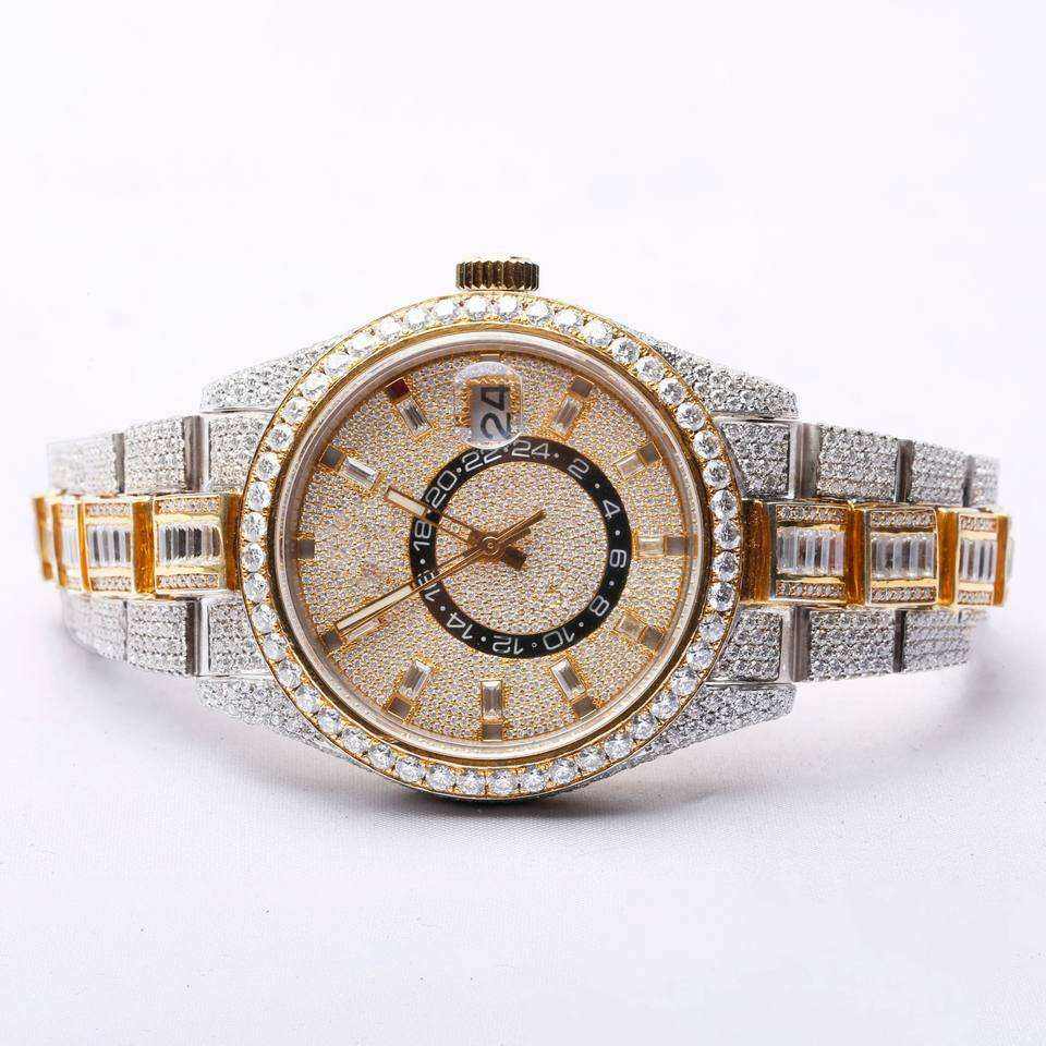 นาฬิกาสไตล์ฮิปฮอป ประดับเพชรโมอิสซาไนต์ สายหนังสแตนเลส กันน้ำ หน้าปัดอะนาล็อก กลไกจักรกล สำหรับทุกเพศ