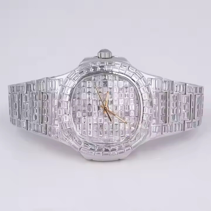 นาฬิกาข้อมือสไตล์ฮิปฮอป ประดับเพชรโมอิสซาไนต์ทรงบาแกตต์ หน้าปัดอนาล็อก กระจกกันน้ำ ตัวเรือนสแตนเลส ระดับความสะอาด VVS