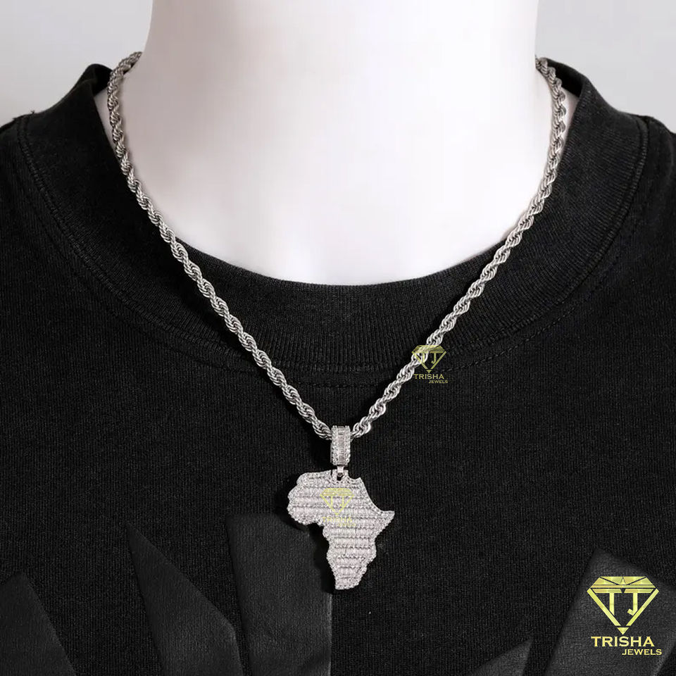 เครื่องประดับสไตล์ฮิปฮอป925เงินสเตอร์ลิงจี้แผนที่แอฟริกาประดับด้วย VVS Lab ปลูกและ Baguette เพชร