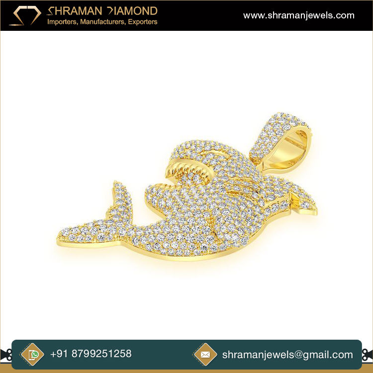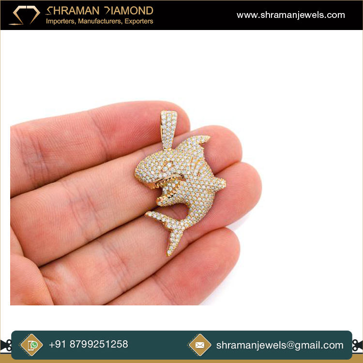 สร้อยคอจี้เพชรรูปฉลามขนาดใหญ่สไตล์ฮิปฮอป925ชุบทองด้วยเงินจี้รูปสัตว์ที่มีเสน่ห์แบบกำหนดเอง