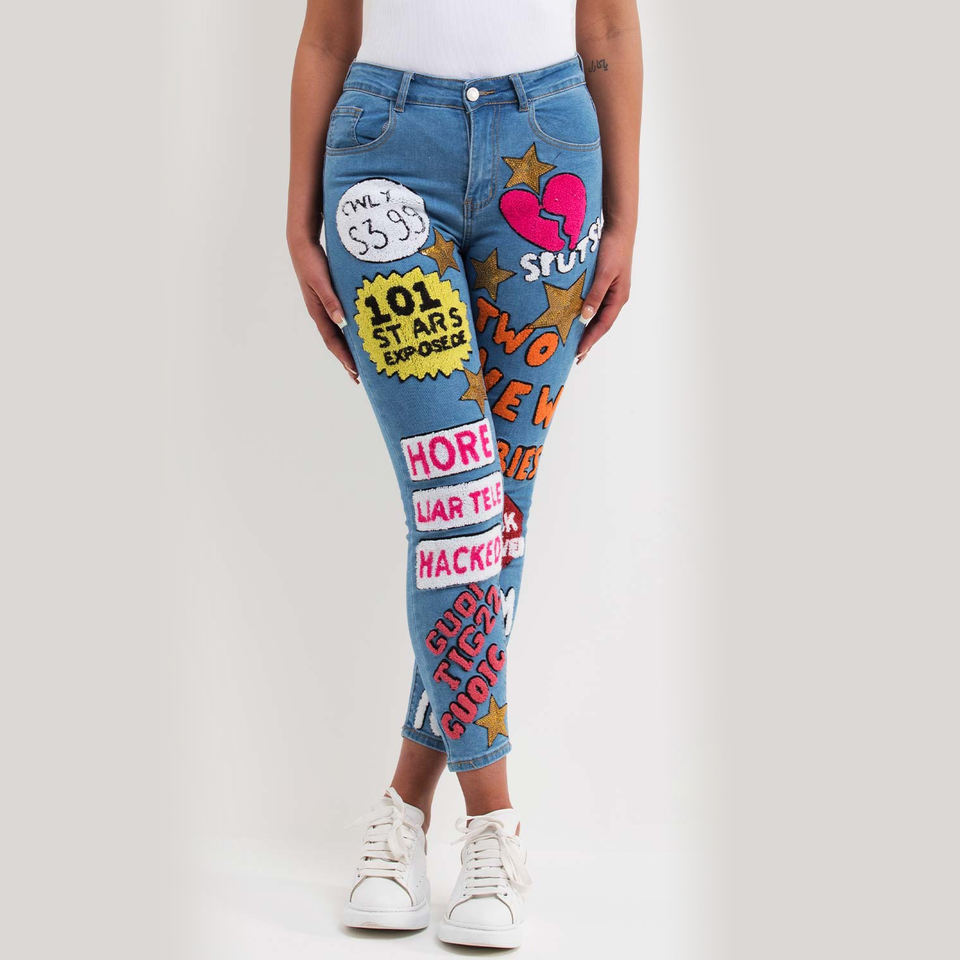 กางเกงยีนส์ทรงตรงผ้าเชนิลล์สีซีดสไตล์ฮิปฮอปแฟชั่นฤดูร้อนทันสมัยเป็นมิตรกับสิ่งแวดล้อมแห้งเร็วสไตล์วินเทจระบายอากาศได้ดี