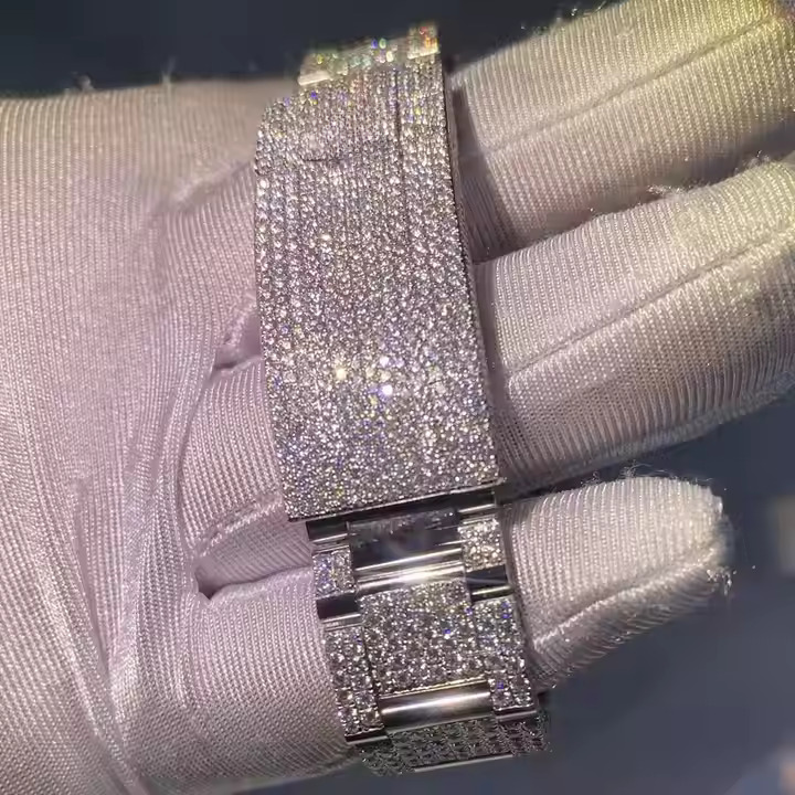 หน้าปัดนาฬิกาหรูสไตล์ฮิปฮอป ประดับเพชรแล็บโกรนความใสระดับ VVS-VS ตัวเรือนสแตนเลสสตีล ฝังเพชรเต็มเรือน ระบบกลไก/ควอตซ์