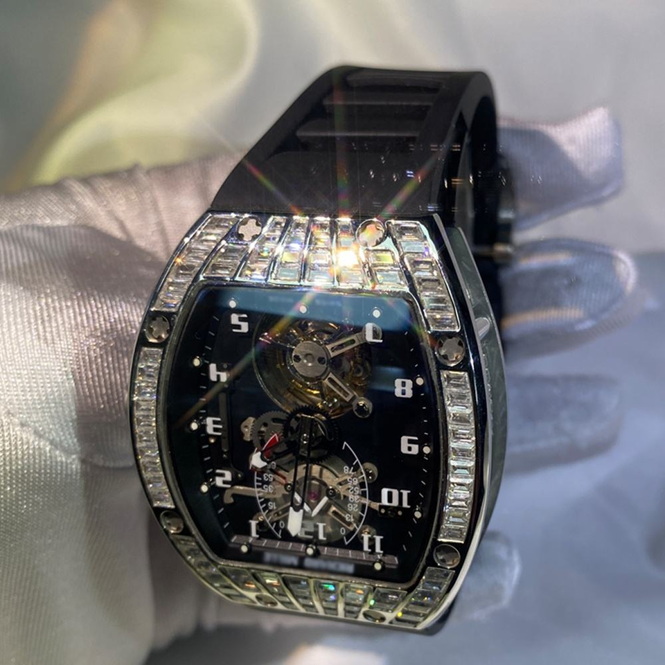 นาฬิกาผู้ชายสไตล์ฮิปฮอปสไตล์ฮิปฮอปประดับเพชรเพชรโมอิส VVS เคสสแตนเลสสีขาวทองหน้าปัดอะนาล็อกกระจก