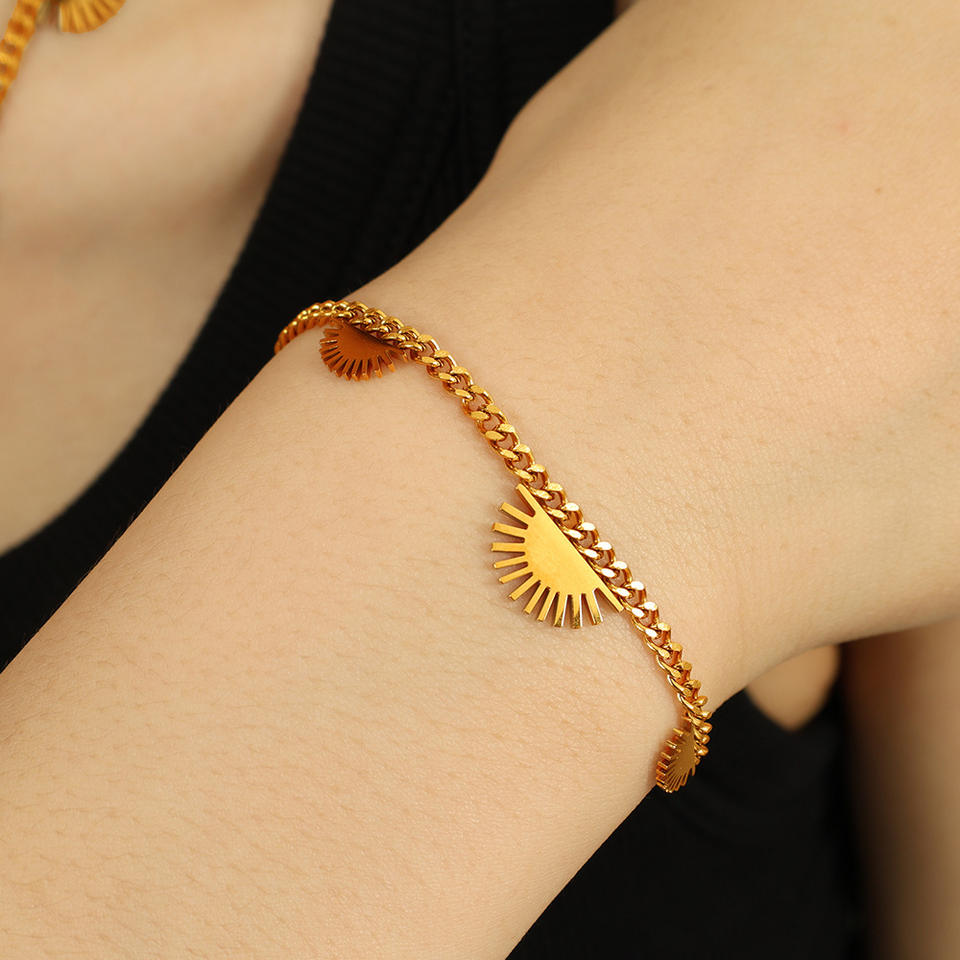 สร้อยคอสไตล์ฮิปฮอปแบบคิวบันพร้อมจี้รูปพระอาทิตย์ ทำจากสแตนเลส เหมาะสำหรับทั้งชายและหญิง ชุดเครื่องประดับแฟชั่น