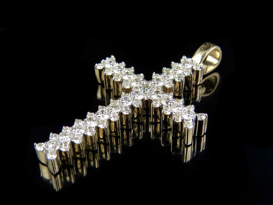 จี้ไม้กางเขนเพชรโมอิส S925 เงินแท้ ประดับเพชรโมอิสไรท์หรูหราเต็มตัว