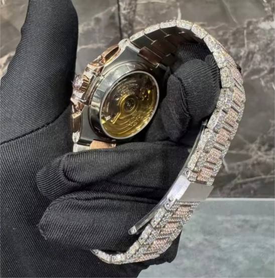 นาฬิกาสแตนเลสสตีลหน้าปัดเพชรขนาด41มม. หน้าปัดเพชรสไตล์ฮิปฮอป VVS Moissanite