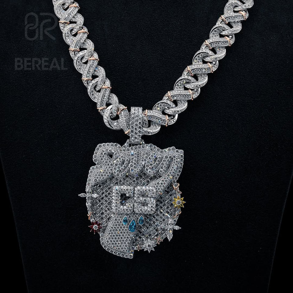 สร้อยคอฮิปฮอปประดับเพชรโมอิสซาไนต์แบบ VVS พร้อมจี้ตัวอักษร ผ่านการทดสอบเพชร เงินแท้ 925 ประดับไพลิน จี้ชื่อแบบ Iced Out เครื่องประดับคุณภาพสูง