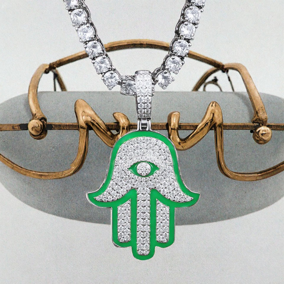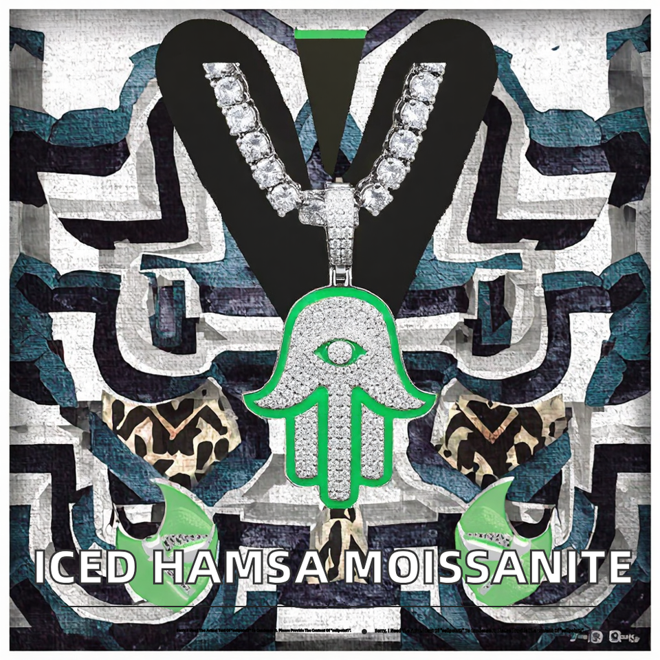 Hip Hop Style for Certified Solid 925 Silver Gold Plated Large Iced Hamsa Brilliant Cut Charms with Claw Setting for Men Women
