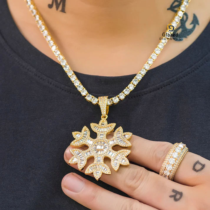 จี้เกล็ดหิมะสีทองทึบ10Kt สไตล์ฮิปฮอปที่ผลิตจากเพชรที่ปลูกในห้องแล็บสำหรับผู้ชาย