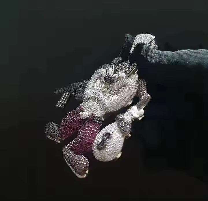 จี้เพชรโมอิสซาไนต์ทรงเหลี่ยมเจียระไนแบบบริลเลียนท์ ตัวการ์ตูนฮิปฮอป แทสมาเนียนเดวิล ขอบเพชรประดับเงินแท้ 925 สำหรับทุกเพศ
