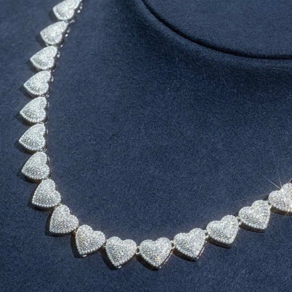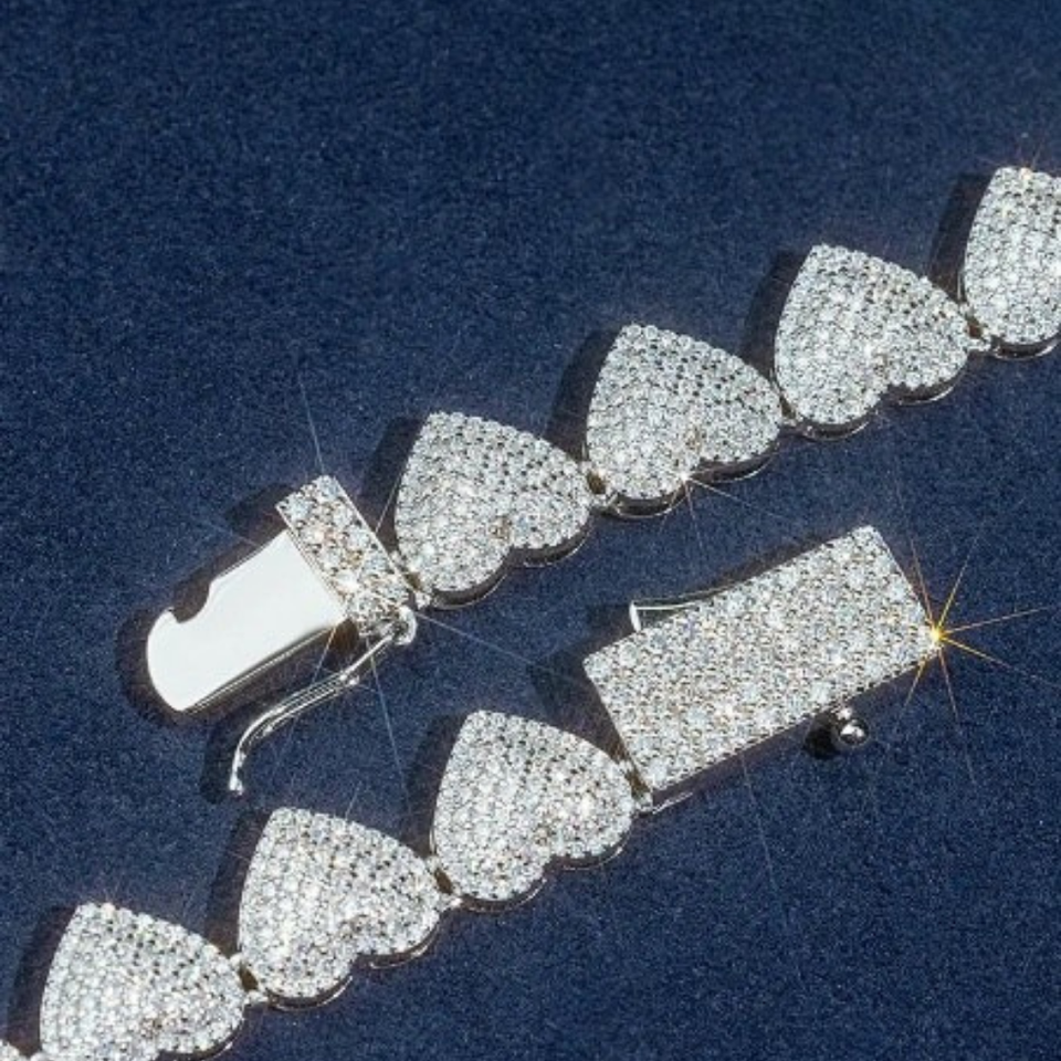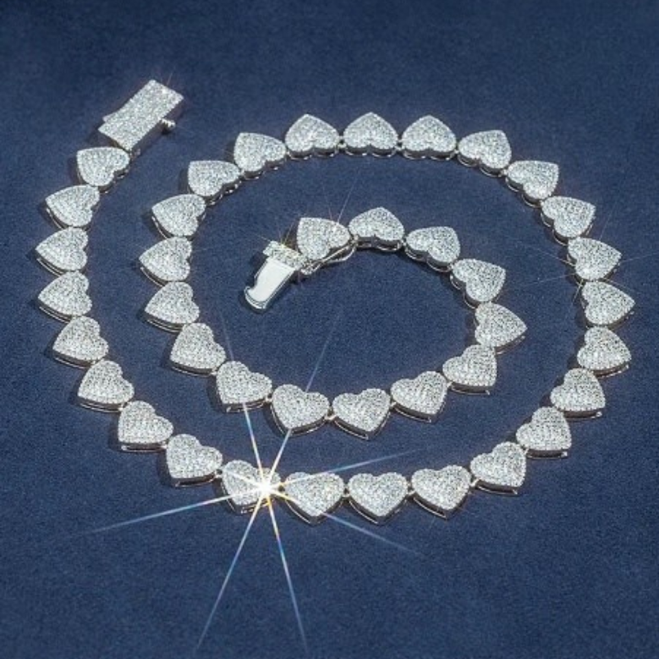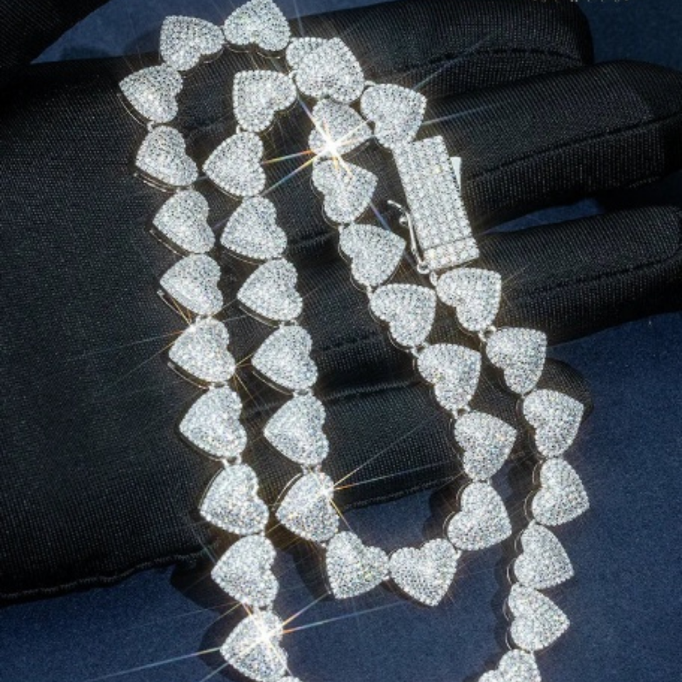 Hip Hop Valentine Day Gift High Quality Fashion 925 Silver 10mm Heart Shape Vvs Moissanite Diamond Blue CZ Heart Chain