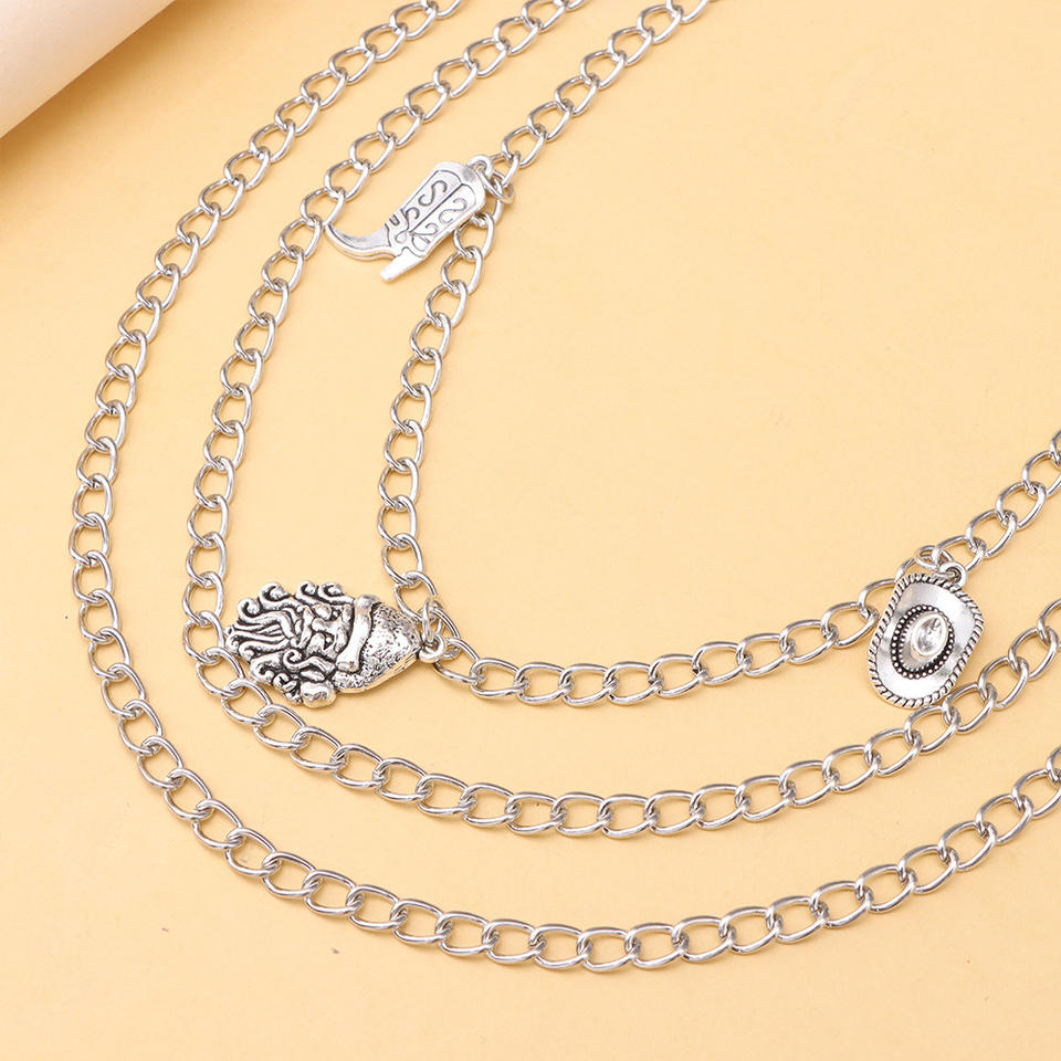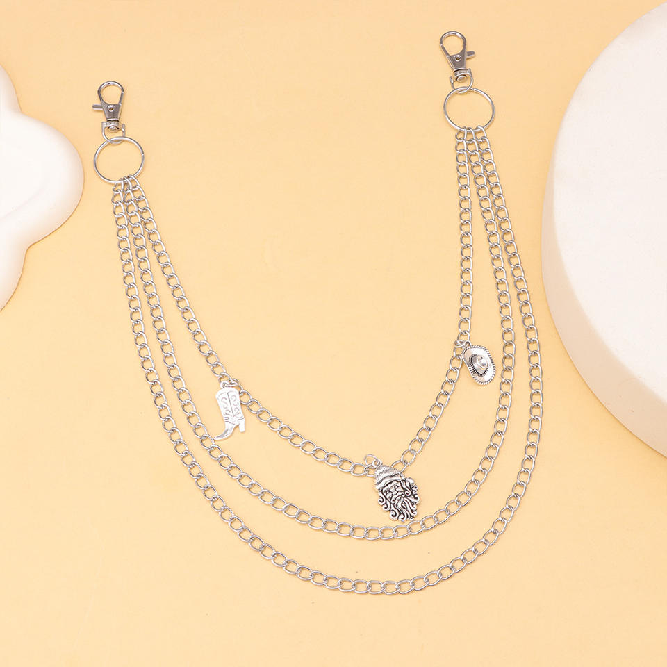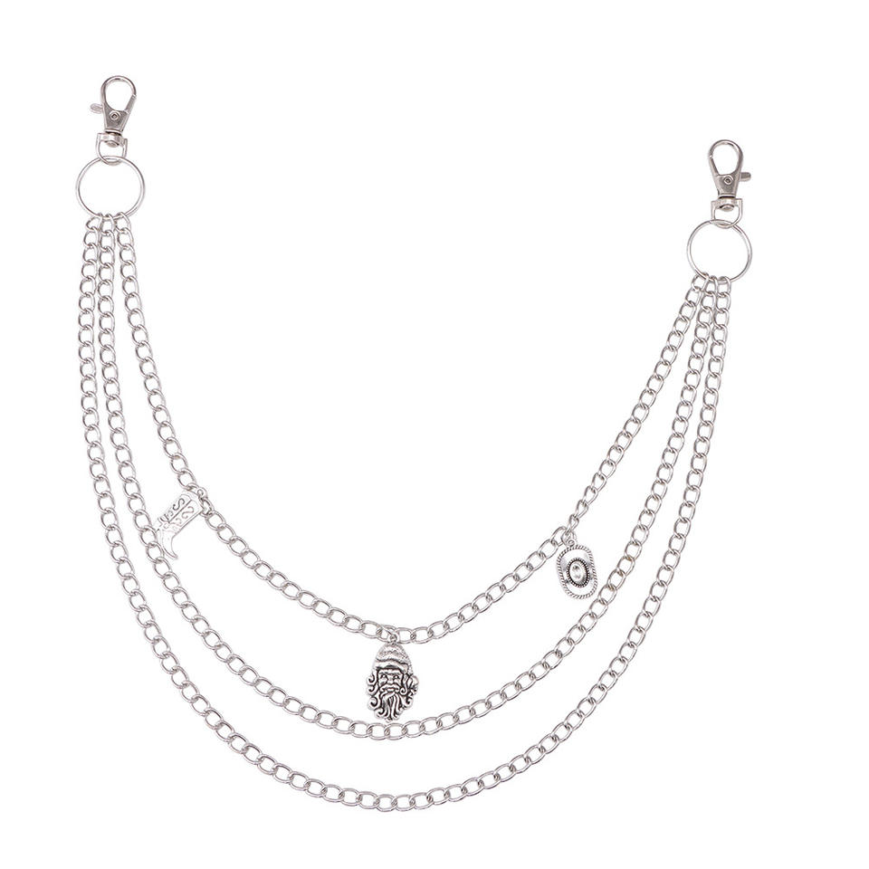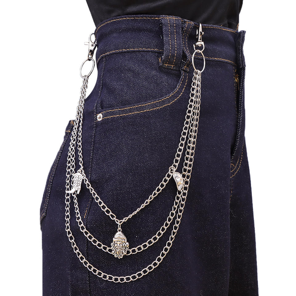 โซ่คาดเอวฮิปฮอปแบบหลายชั้น จี้โลหะสีเงิน สำหรับกางเกงยีนส์ เครื่องประดับแฟชั่นลำลองสำหรับทุกเพศ