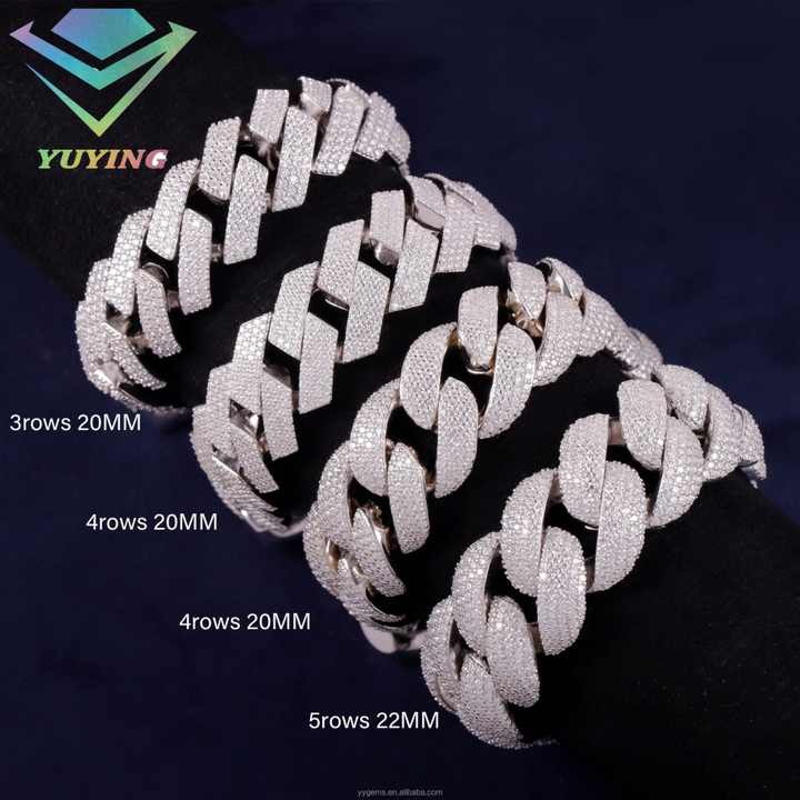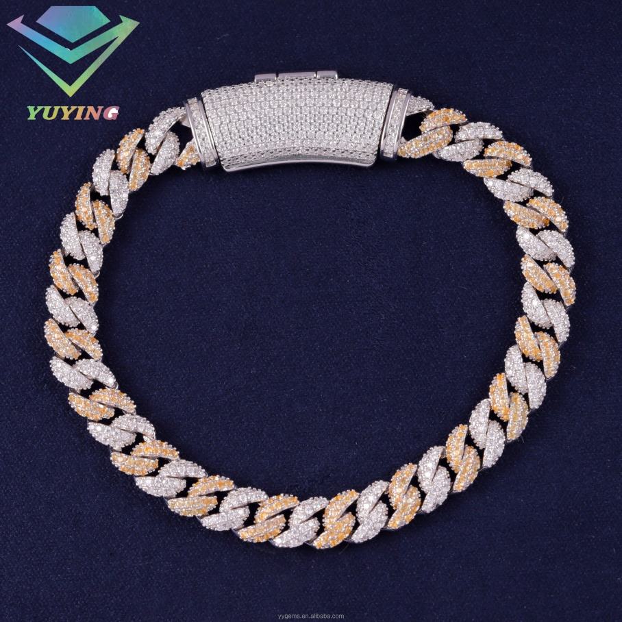 กำไลข้อมือฮิปฮอปสีขาวทองประดับเพชรเต็มวง เงินแท้ 925 ประดับเพชรหลากสี ระดับ D สี VVS มอยส์ซาไนต์ สำหรับผู้ชาย