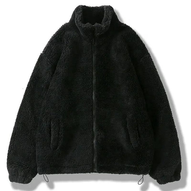 Hip Hop Winter Fleece Jacket Streetwear Fuzzy Zipper Coat Men Autumn Solid Color Lightweight Jackets Black White