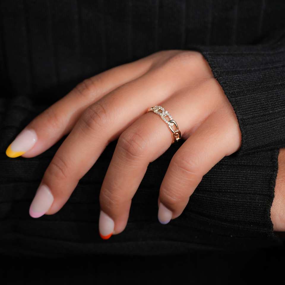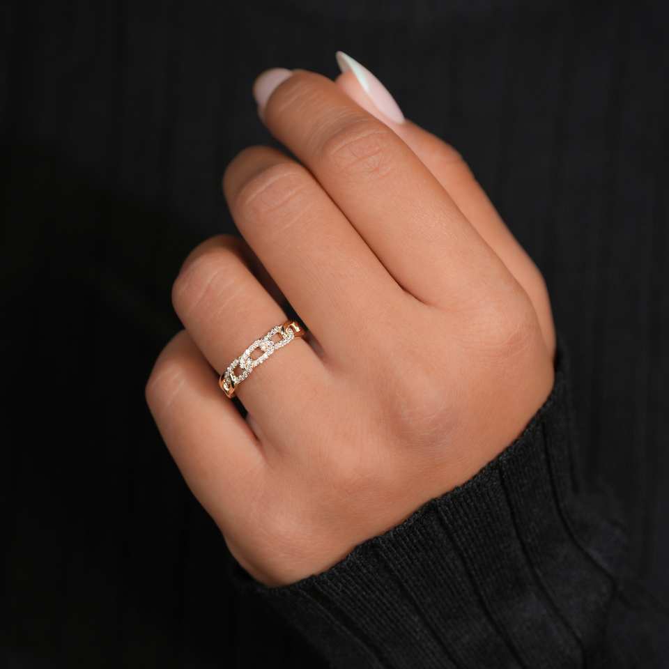 แหวนหรูหรา 0.20 กะรัต ทำมือ ประดับเพชรเลี้ยงในห้องปฏิบัติการ รับรองโดย IGI ฝังแบบ Pave Setting ทอง 10k ดีไซน์ Cuban Link คลาสสิก สไตล์ฮิปฮอป