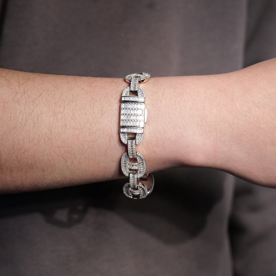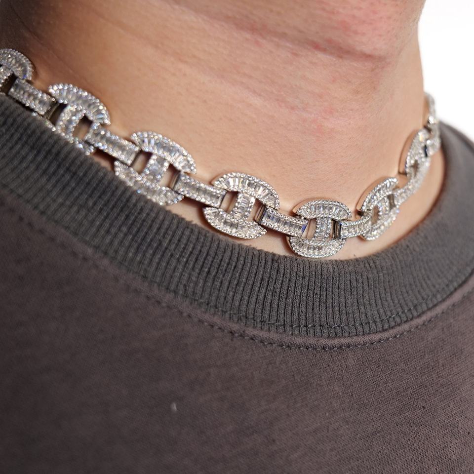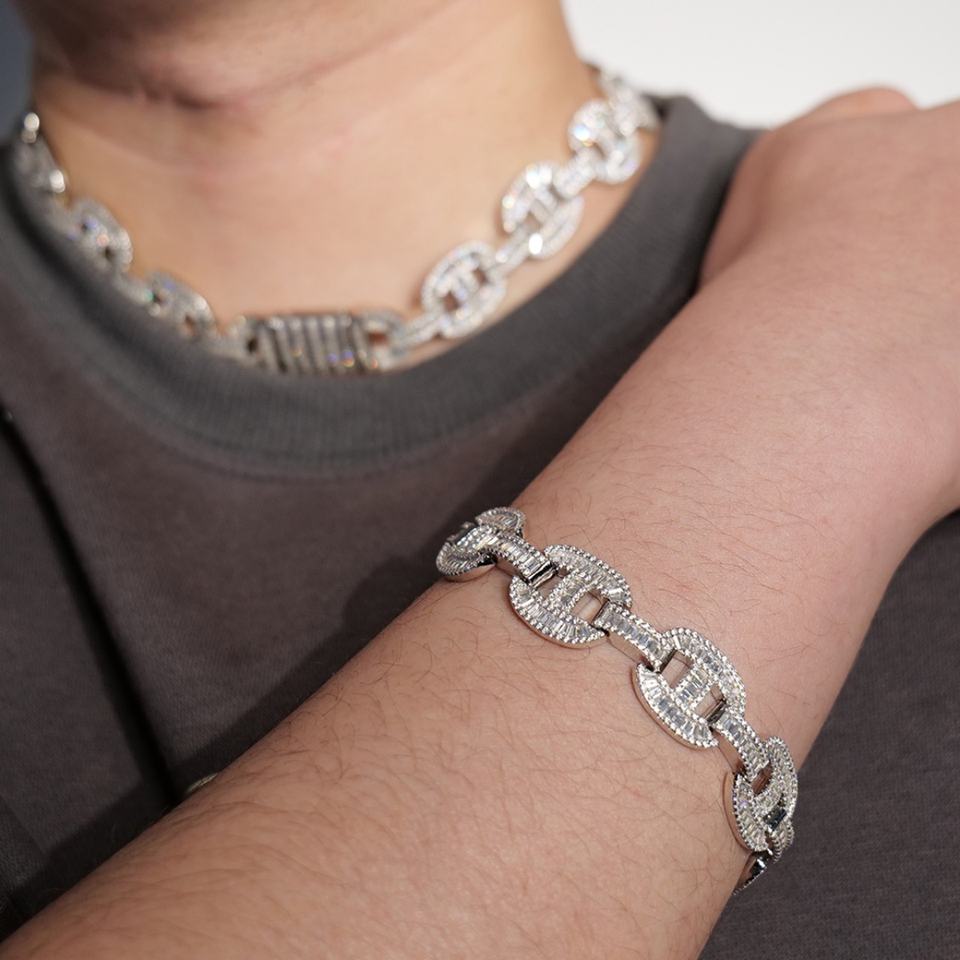 สร้อยคอและกำไลข้อมือฮิปฮอปประดับเพชรซิคอนคุณภาพสูง ฝังด้วยมืออย่างประณีต ระดับความยากสูง ขายในราคาถูก