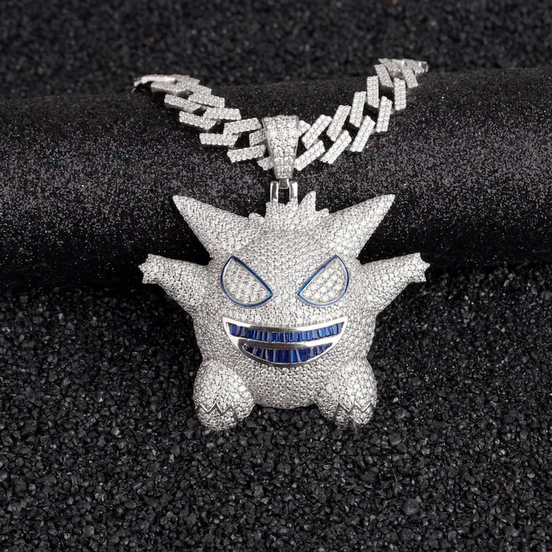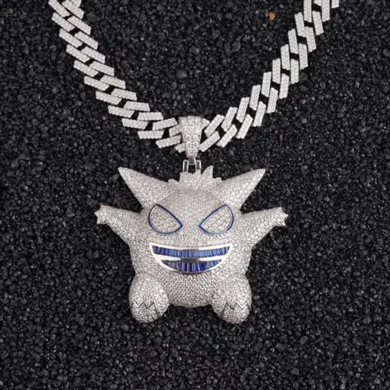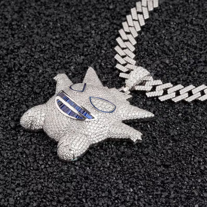 จี้รูปผีการ์ตูนประดับเพชรซิคอนเงินสเตอร์ลิงสไตล์ฮิปฮอป ดีไซน์หรูหราสำหรับงานปาร์ตี้