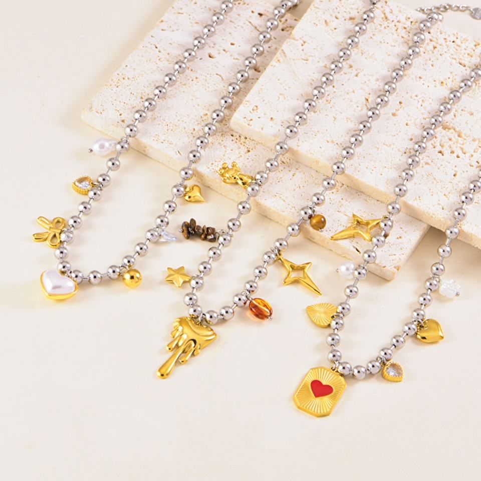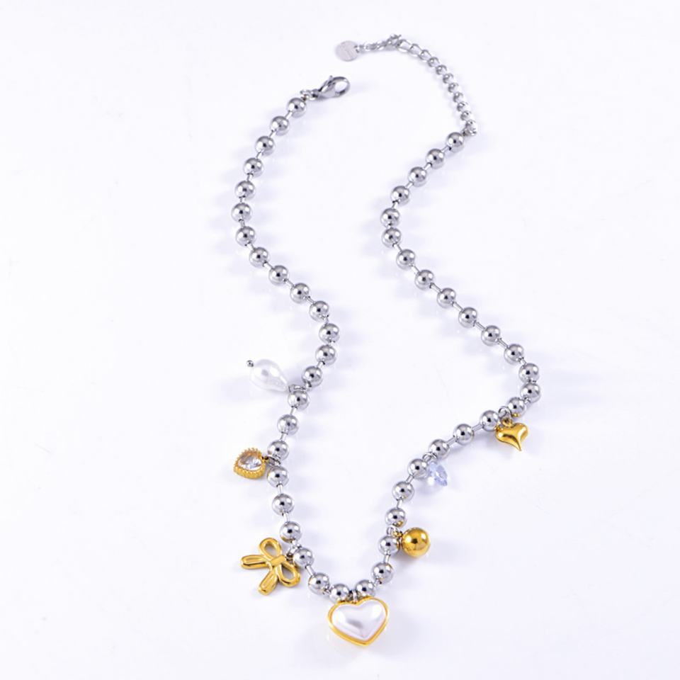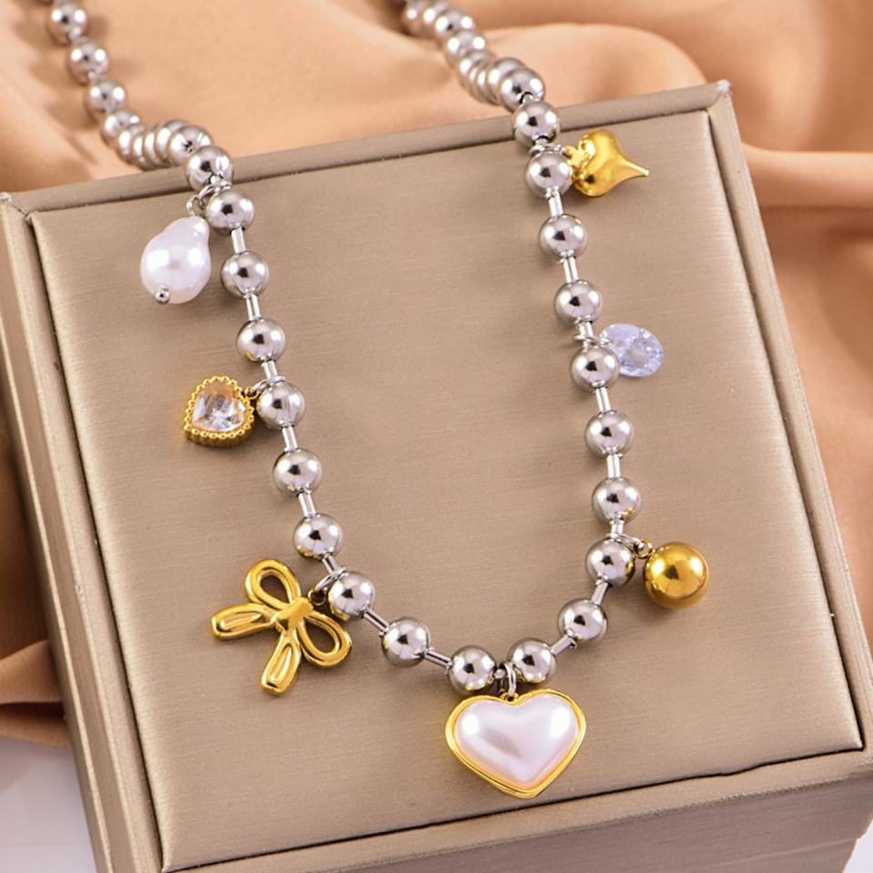 สร้อยคอฮิปฮอปสไตล์ปรับแต่งได้ กันน้ำ ทำจากสแตนเลสสตีลสองสี ประดับด้วยลูกปัดมุกน้ำจืดรูปหัวใจสำหรับผู้หญิง