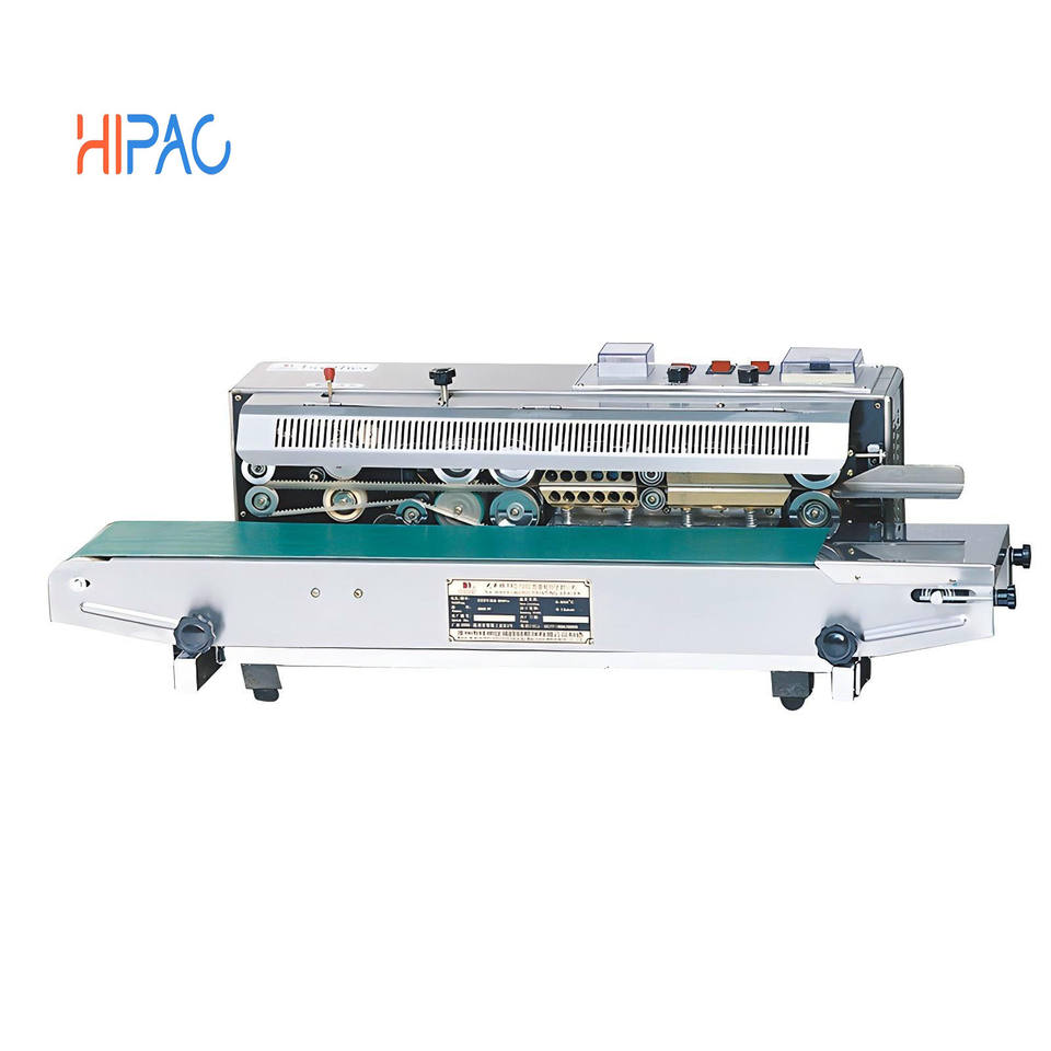 เครื่องซีลปากถุงแบบกึ่งอัตโนมัติ รุ่น Hipac FR900W ทำจากสแตนเลส ใช้สำหรับซีลถุงฟิล์มต่อเนื่อง ถุงกระดาษ พร้อมชุดเกียร์และส่วนประกอบหลักคุณภาพสูง
