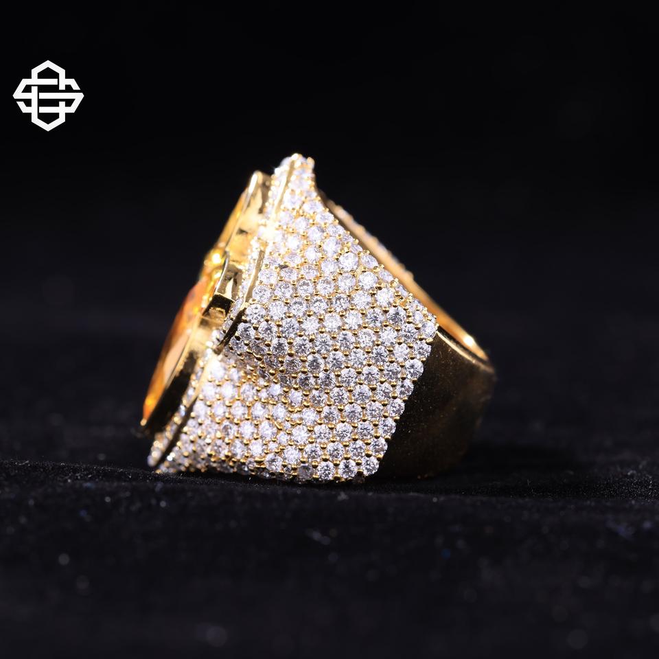 แหวนฮิปฮอปประดับเพชรโมอิสซาไนต์ ตัวเรือนโลหะผสมชุบทอง 14K เงินสเตอร์ลิง ทรงมาร์คีส์ สำหรับผู้ชาย ดีไซน์โดดเด่น ปรับแต่งได้ เหมาะสำหรับงานปาร์ตี้ รับรองโดย IGI