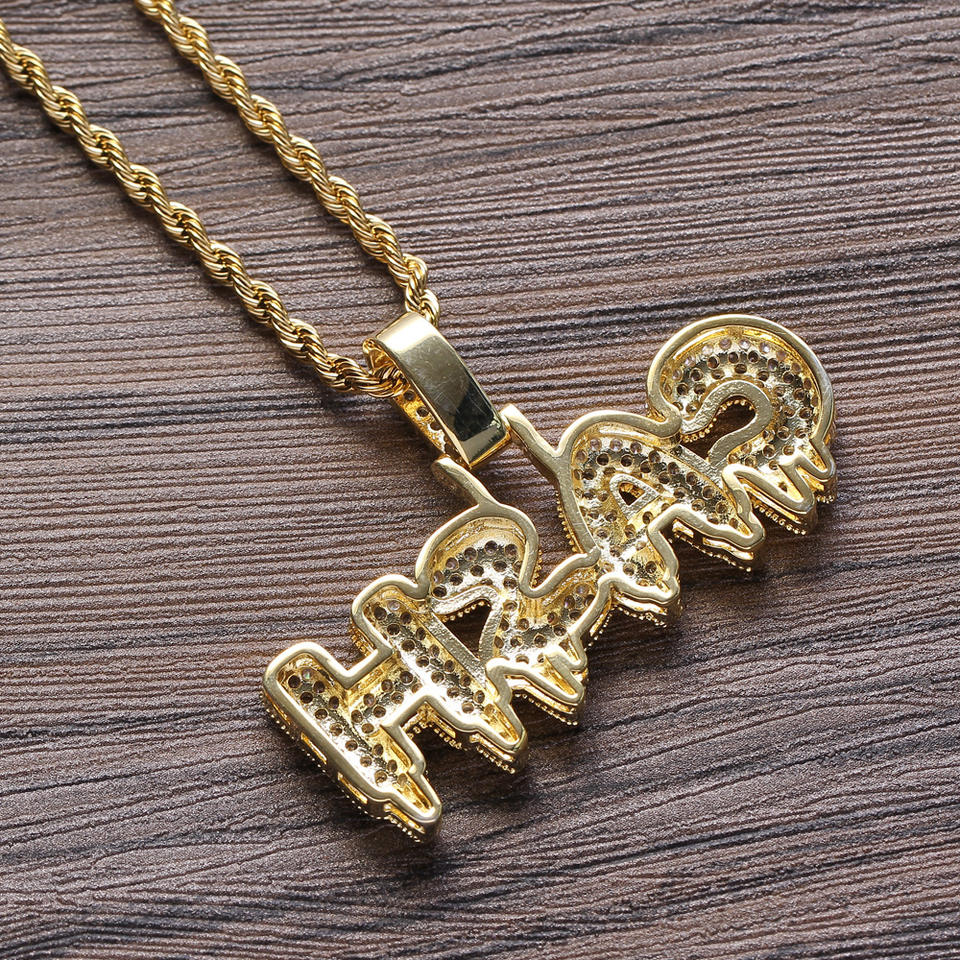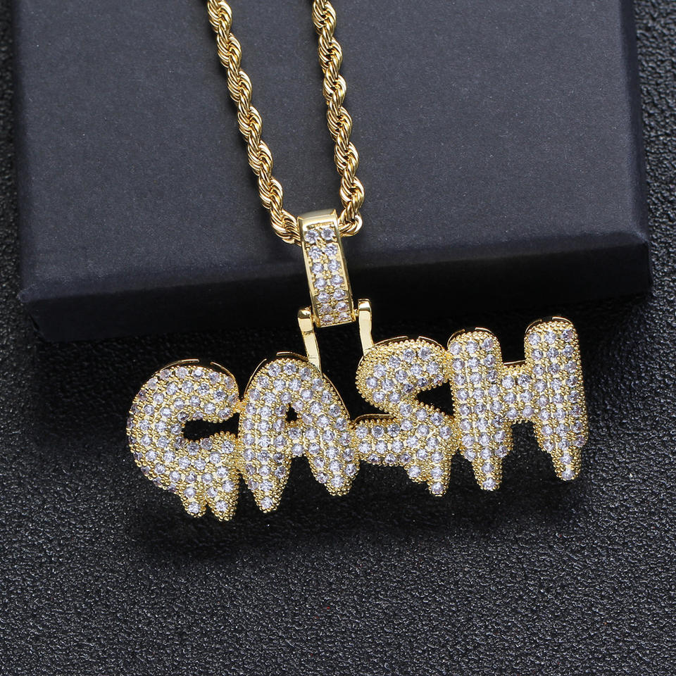 จี้ห้อยคอรูปตัวอักษร GANG ประดับเพชร CZ แบบไมโครเพฟ บนตัวเรือนทองเหลืองชุบทอง พร้อมสร้อยคอทองเหลือง