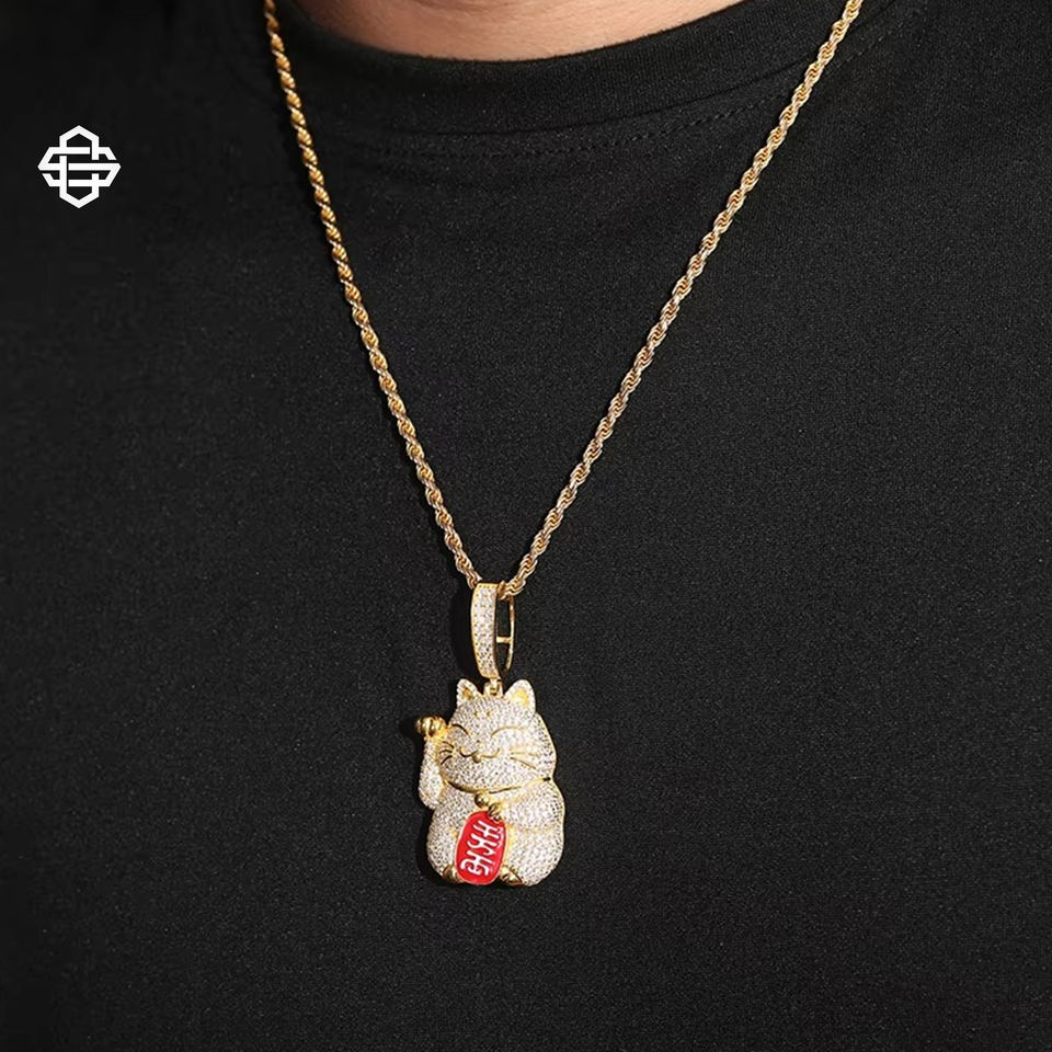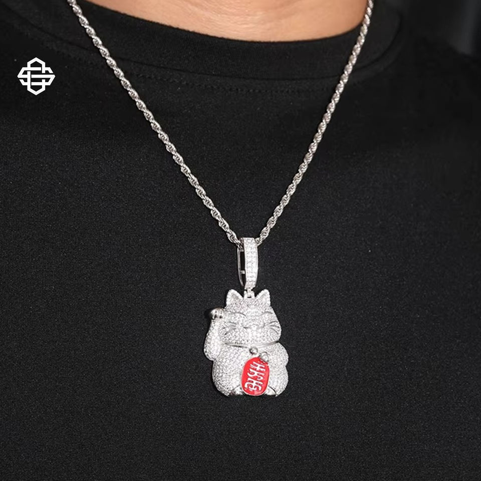 สร้อยคอจี้รูปแมวเพชรโมอิสสำหรับผู้ชายและผู้หญิงเครื่องประดับแฟชั่นแนวสตรีท