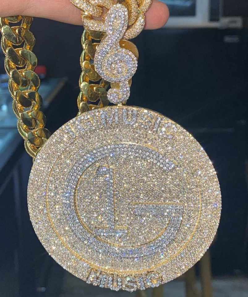 Hiphop Moissanite Pendant With Chain 925 Sterling Silver Iced Out Big Round Charm Bling Custom Moissanite Pendant
