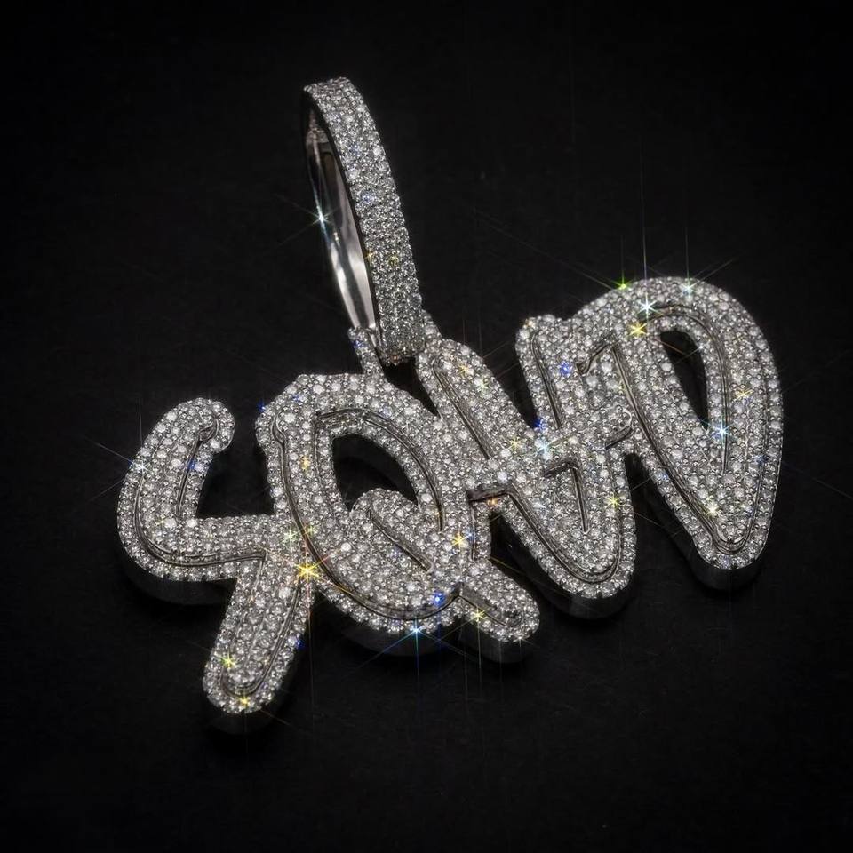 จี้ห้อยคอฮิปฮอปทันสมัยชุบโรเดียมพร้อมตัวอักษรชื่อสั่งทำประดับโมอิสซาไนต์ เงินแท้ 925