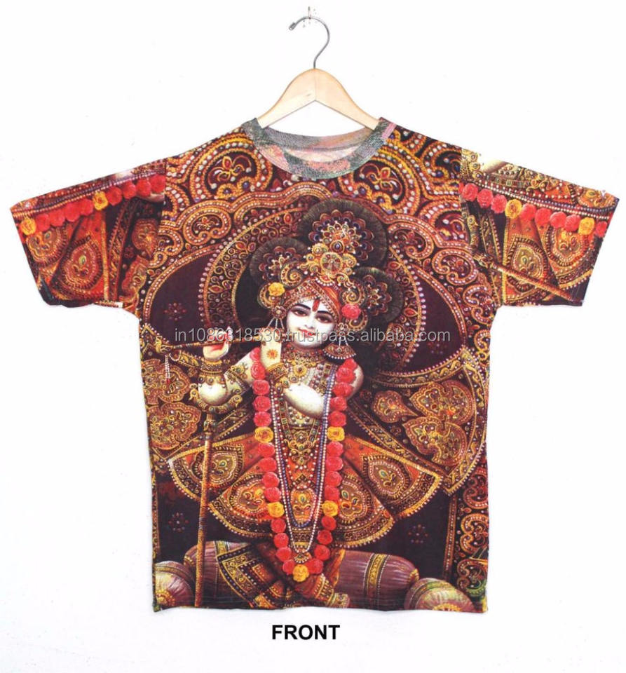 เสื้อยืดฮิปปี้ลายพระเจ้าฮินดู พระพุทธคุริสต์ พระวิสุณ โกวินด้า โกปาลา ออม โยคะ ไซส์ M / L / XL