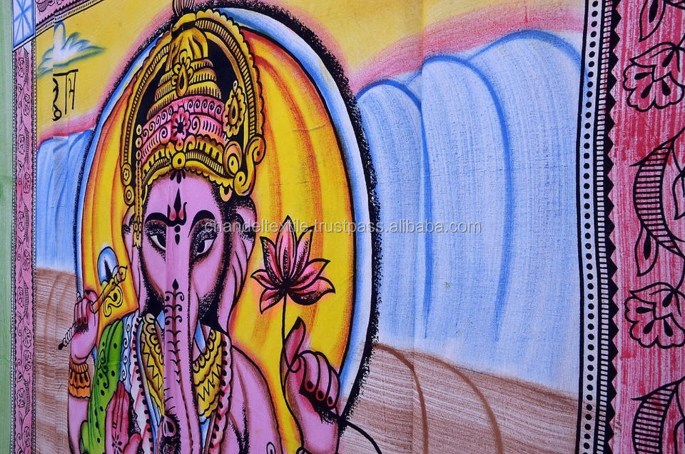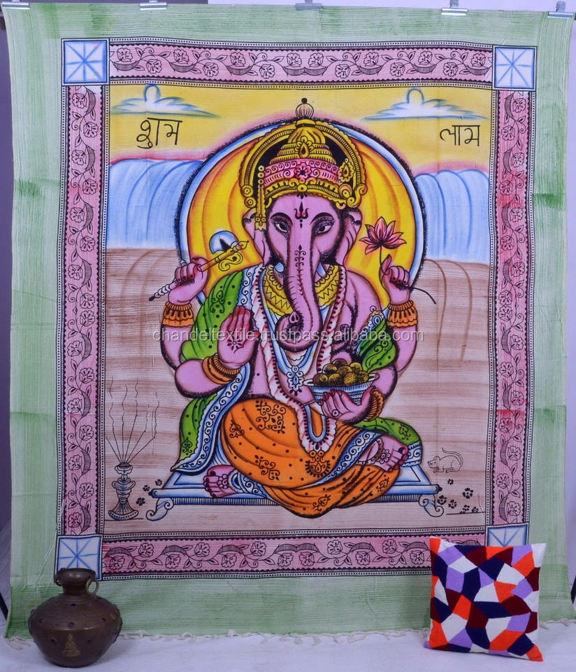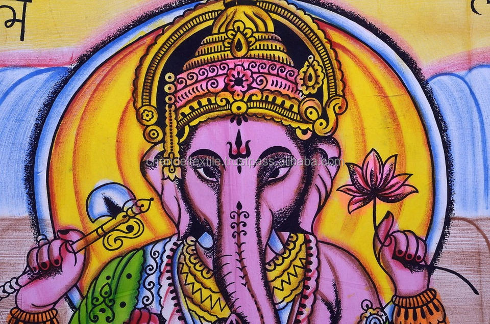 ผ้าแขวนผนังลายแมนดาลาสไตล์ฮิปปี้ พิมพ์ลายพระพิฆเนศ เทพเจ้าแห่งอินเดีย ศิลปะราชินี เสริมโชคลาภ ตกแต่งบ้าน