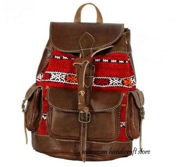 กระเป๋าเป้สะพายหลังหนังแท้กันขโมยแนววินเทจแนวฮิปปี้และกระเป๋าทรงถัง