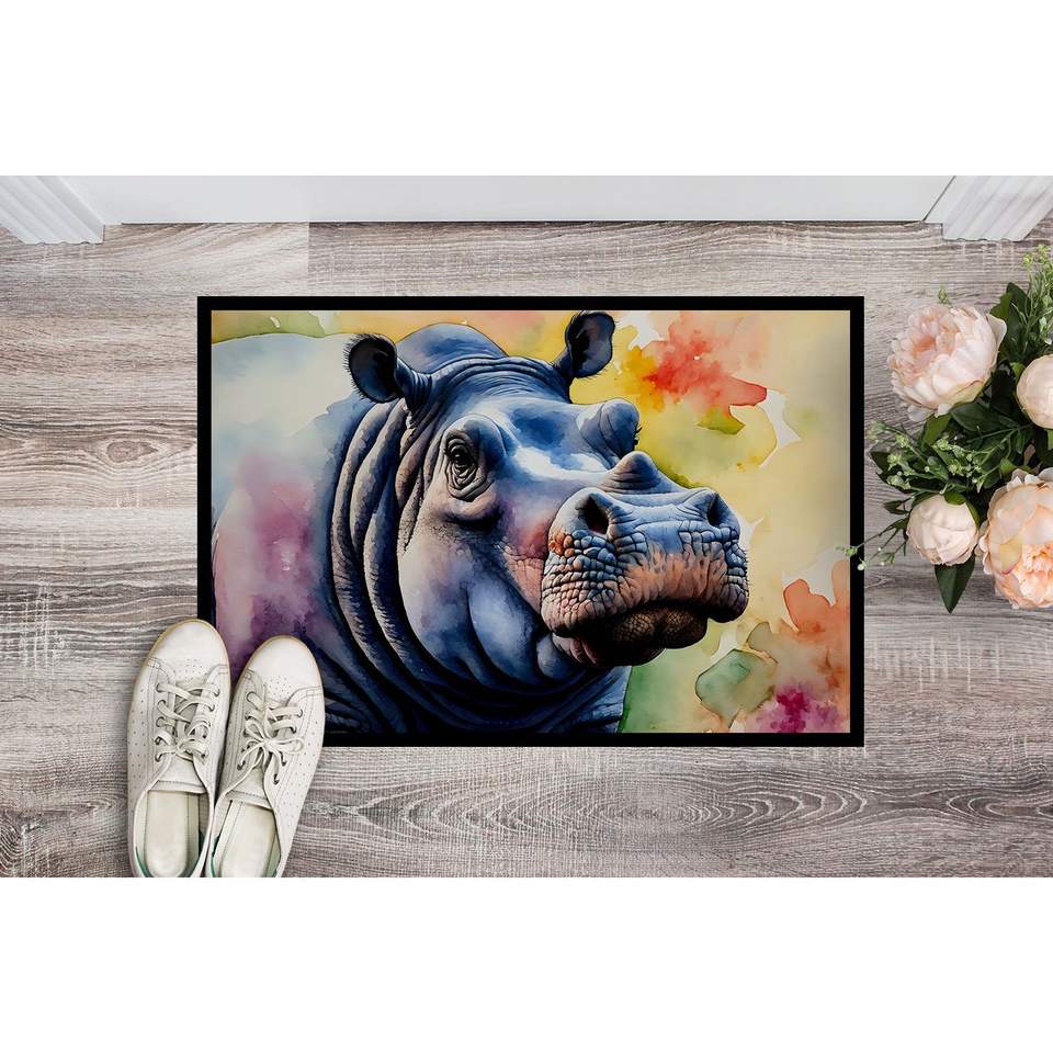 พรมเช็ดเท้าหน้าประตูฮิปโปโปเตมัสกันลื่นในร่ม/กลางแจ้งซักได้ต่ำกอง24H x 36W สำหรับทางเข้า