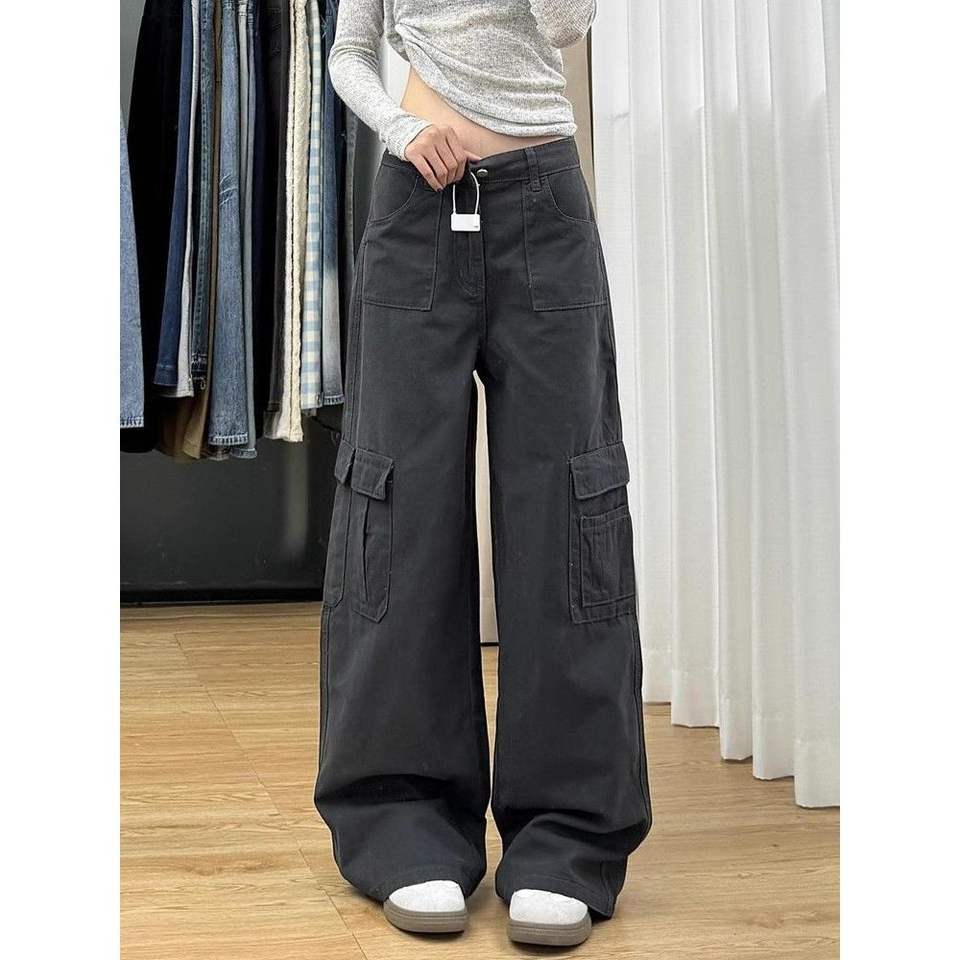ฮิโรมิ 2025 ฤดูใบไม้ผลิ ฤดูใบไม้ร่วง ดีไซน์ใหม่ สไตล์อเมริกันเรโทร กางเกงยีนส์ผู้หญิงเอวต่ำ ทรงตรง ผ้าบาง หลวม สไตล์เรียบหรู สีเทา