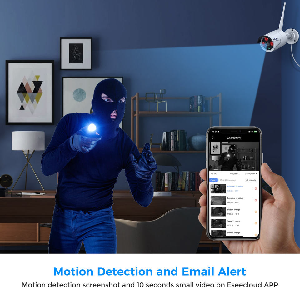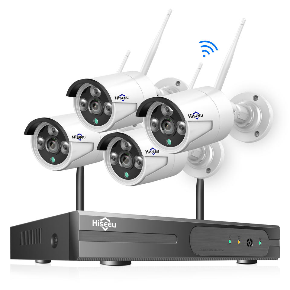 กล้องวงจรปิด Hiseeu 4MP ระบบมองเห็นกลางคืนพร้อมเซ็นเซอร์ตรวจจับความเคลื่อนไหว กล้องรักษาความปลอดภัยภายในบ้าน ระบบไร้สาย NVR บันทึกภาพ กล้องวงจรปิดแบบชุด Wifi H.265 4CH