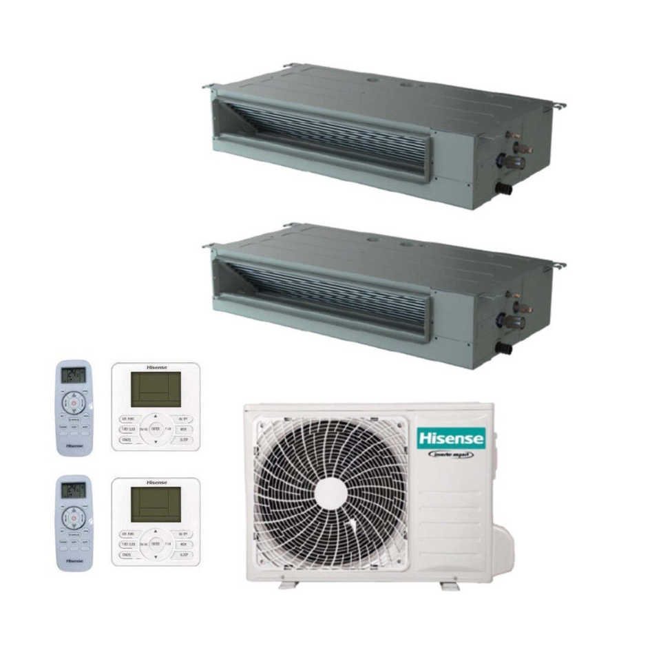Hisense เครื่องปรับอากาศแบบท่ออินเวอร์เตอร์แบบแยกคู่9 + 9พร้อม2AMW50U4RXA R-32 Wi-Fi อุปกรณ์เสริม9000 + 9000ที่มีมาตรฐานและแบบใช้สายอีกครั้ง