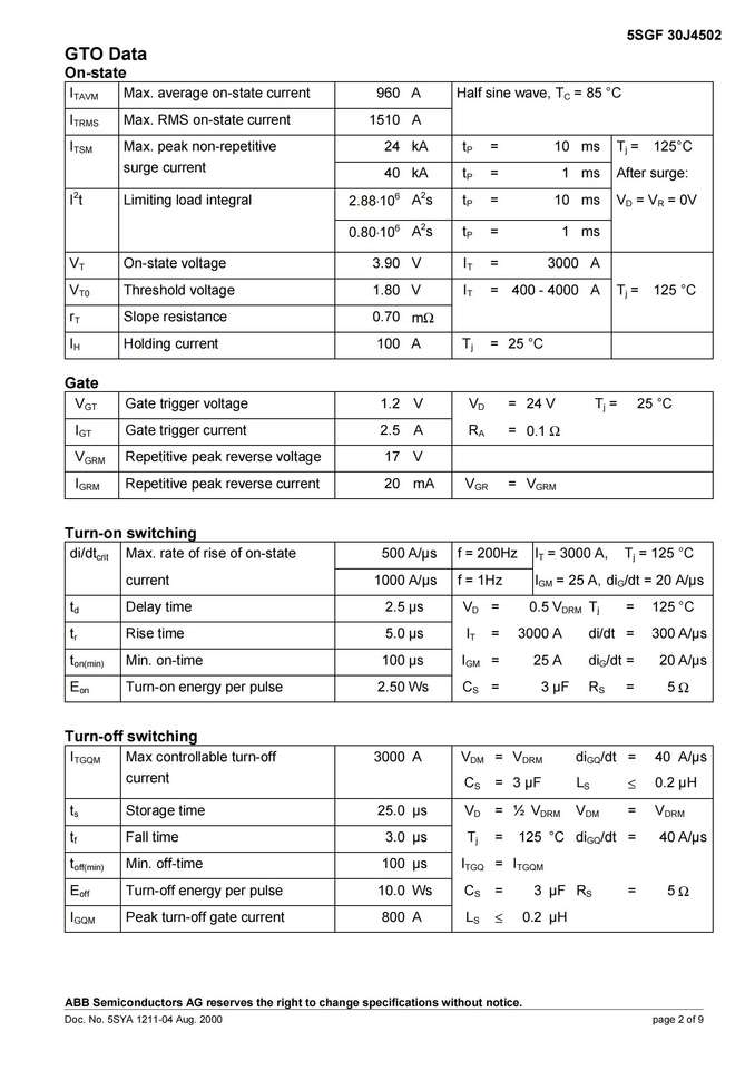 Patented free-floating silicon technology Low on-state and switching losses Annular gate electrode Industry standard housing Cosmic radiation withstand ratingDescription