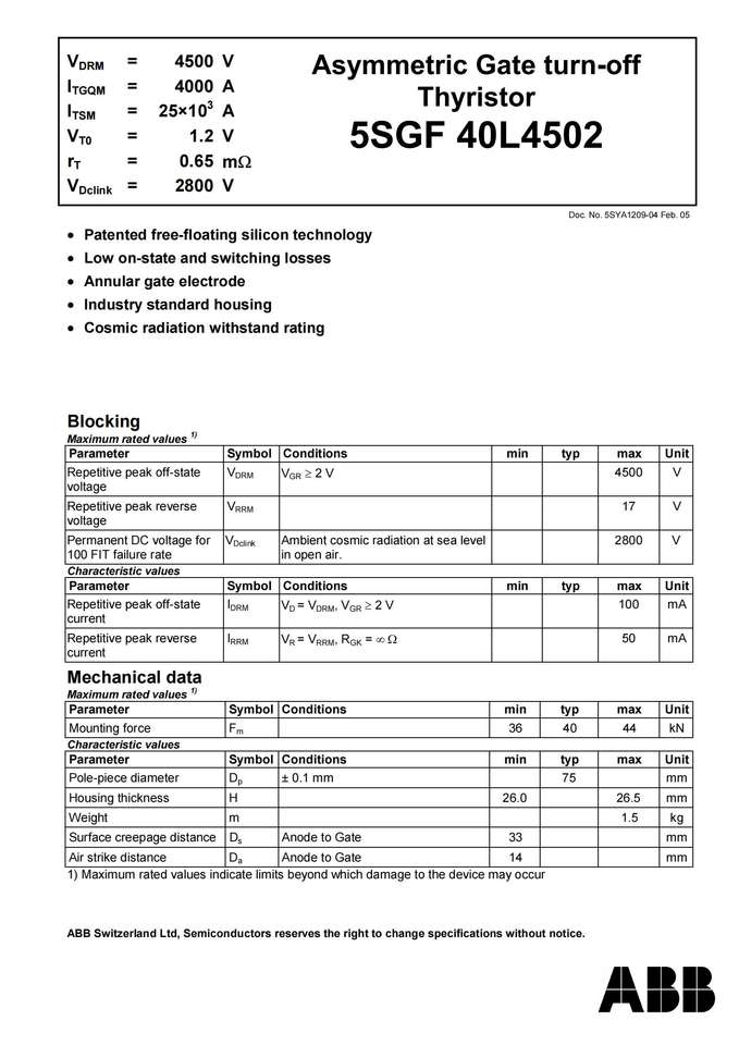 Patented free-floating silicon technology Low on-state and switching losses Annular gate electrode Industry standard housing Cosmic radiation withstand ratingลักษณะ
