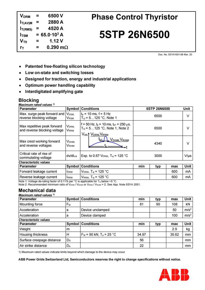 5STP 26N6500หมายเลขรุ่น