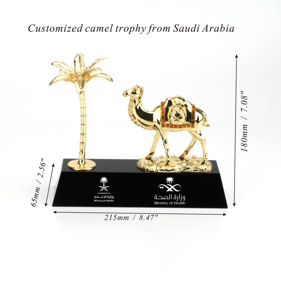 Hitop Plated Camel and Coconut Tree Model Gold with Crystal Base New Gift Box Sports Custom Metal Souvenir Trophy